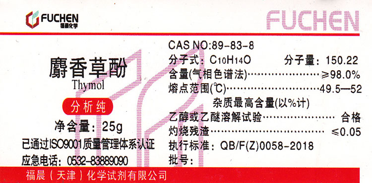 Thymol AR25g thymol analytically pure chemical reagent chemical raw material experimental supplies promotion