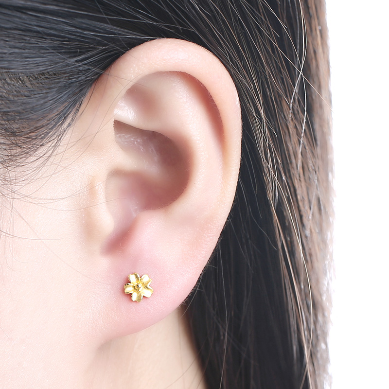 TSL Xie Ruilin gold stud earrings women hibiscus flower simple pure gold temperament earrings earrings YM352