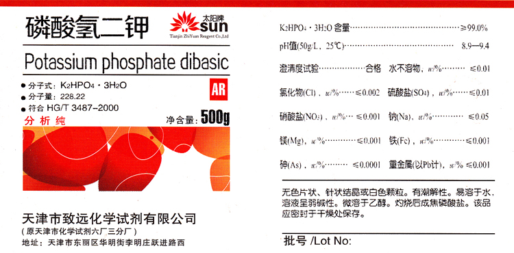 Hydrogen Dipotassium Phosphate AR500g Potassium Phosphate Dipotassium Chemical Reagent Analysis Purified Raw Material Experimental Supplies Consumables