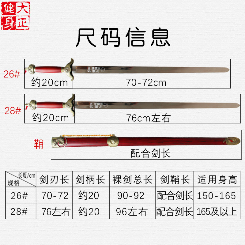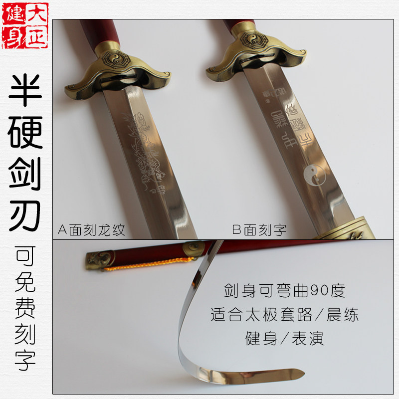 Gossip Tai Chi Sword Stainless Steel Semi-hard Sword Men and Women Same Morning Sword Mulan Sword Half-unopened Dark Fitness