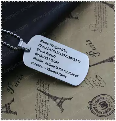 DIY laser deep word military brand titanium steel frosted employees work number plate necklace anti-lost dog brand pendant