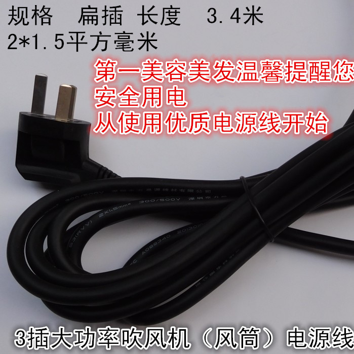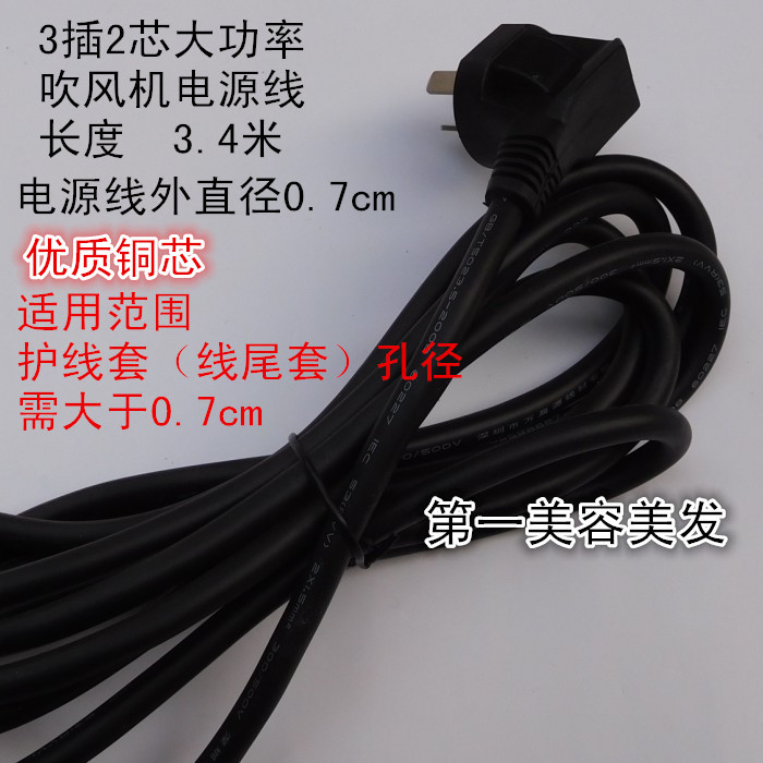 Hairdresser high-power professional hair dryer hair dryer accessories 3 plug 3 4 meters soft high-quality thick copper core power cord
