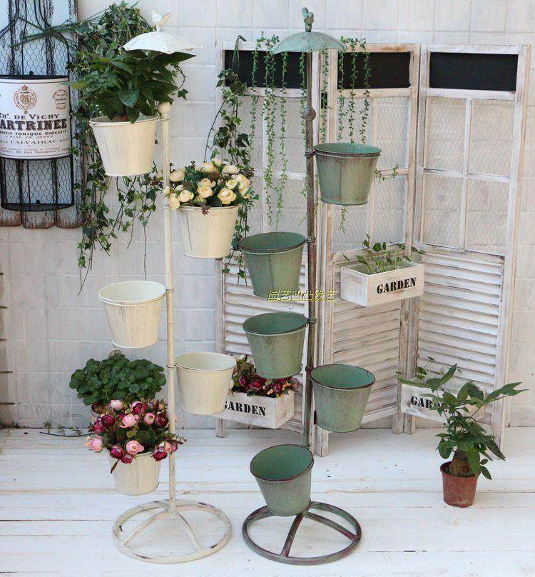 Wrought iron old bird multi-layer flower trellis Balcony Living room floor-to-ceiling flower stand Old umbrella succulent pot