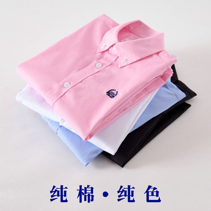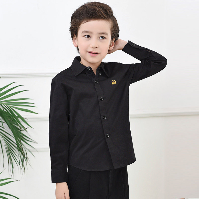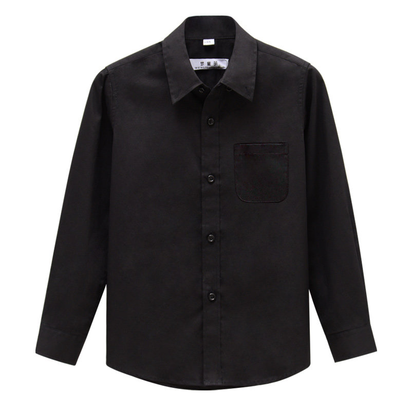 Children Black Shirt Long Sleeves Pure Cotton CUHK Child Elementary School Kids Performance Blouse Spring Autumn School Uniform Boy Pure Color Shirt