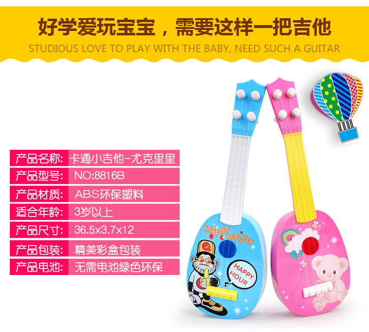 Children's cartoon guitar toys can play ukulele children's musical instruments baby beginner mini guitar simulation