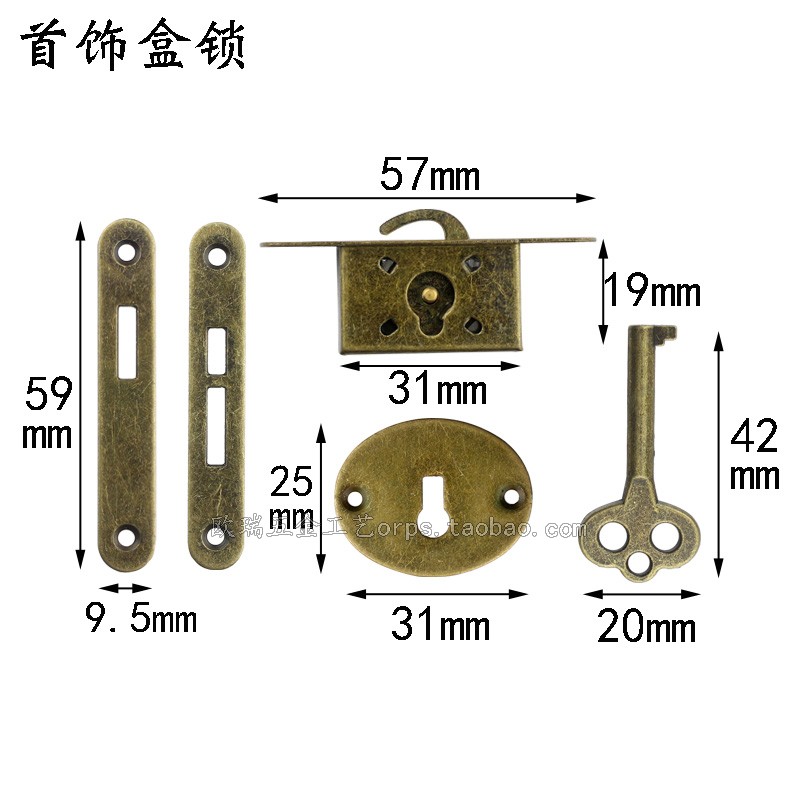 Jewelry box hidden lock drawer lock hook lock sliding door lock retro cabinet door small lock counter lock wardrobe drawer lock file lock