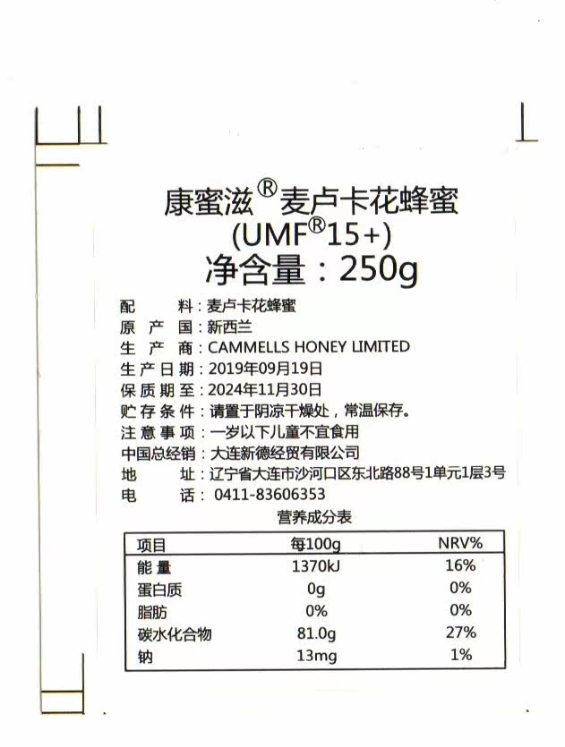 Conamex nourishing the McLuca UMF15 Honey 250g New Zealand Original Imported Natural Manouka Official Flagship Store