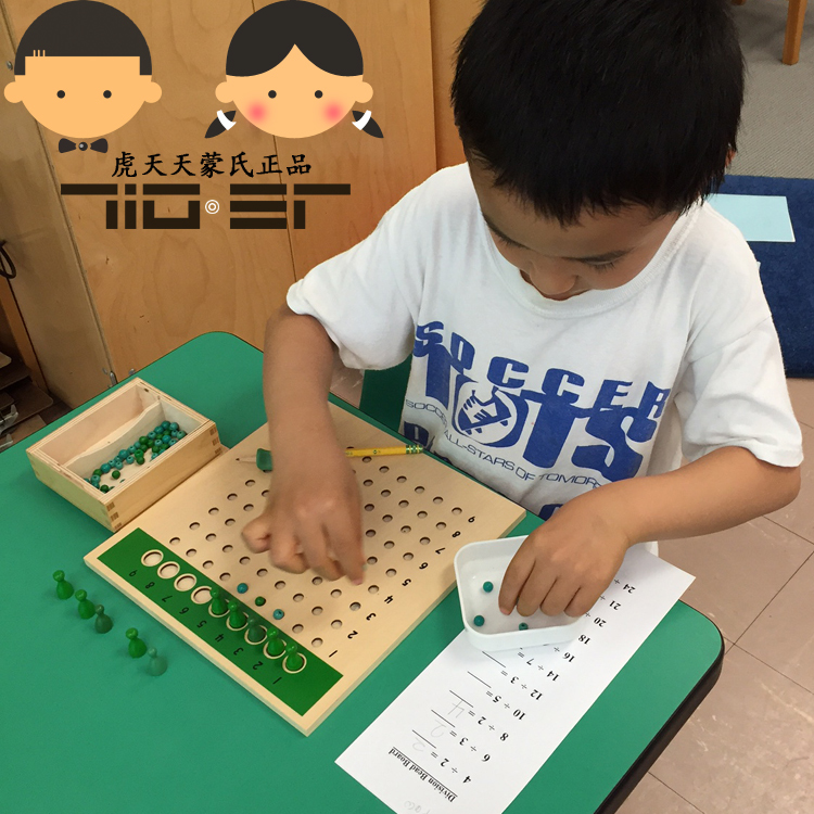 Tiger Day Montessori math teaching aids Single-digit division operation Division Abacus board with homework paper Montessori Division board