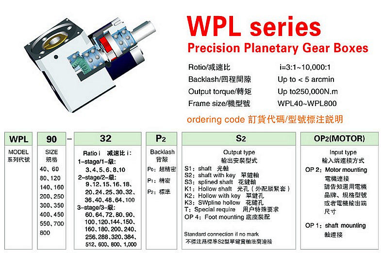 Precision planetary reducer WPL60L1-6-P2-S2 with Angawa Delta 200W servo motor dedicated