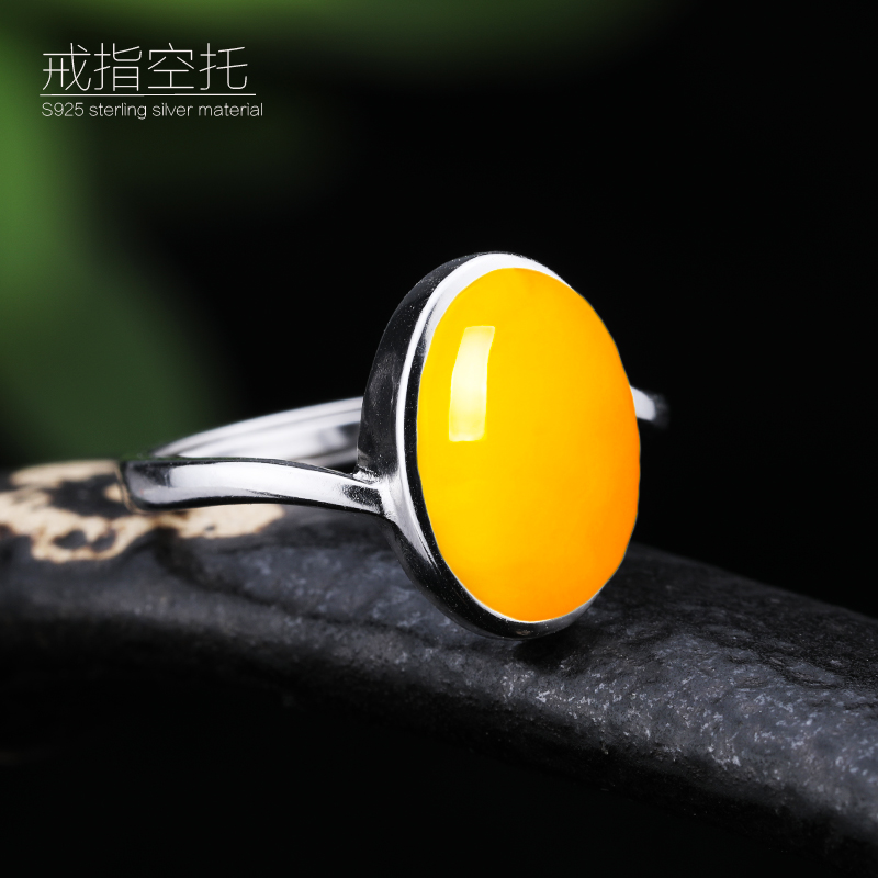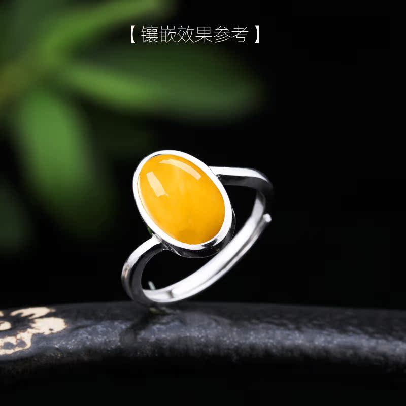 S925 sterling silver ring empty holder platinum-plated ring holder inlaid with beeswax amber women's live mouth silver ring holder 10*13