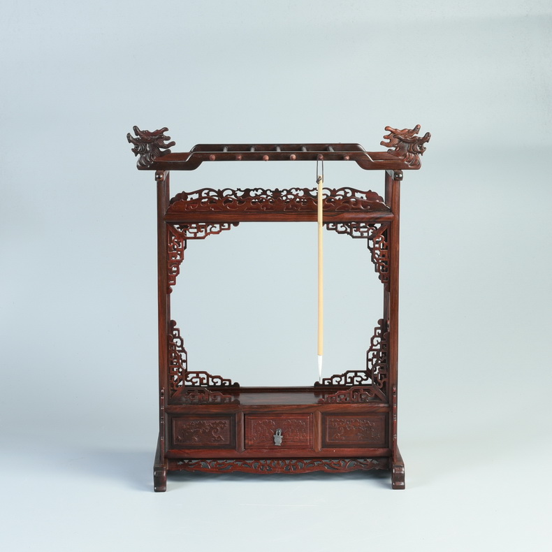 Qinshu Lvhong acidwood carving pen holder solid wood brush hanging brush holder bibbib brush holder four treasures of the study