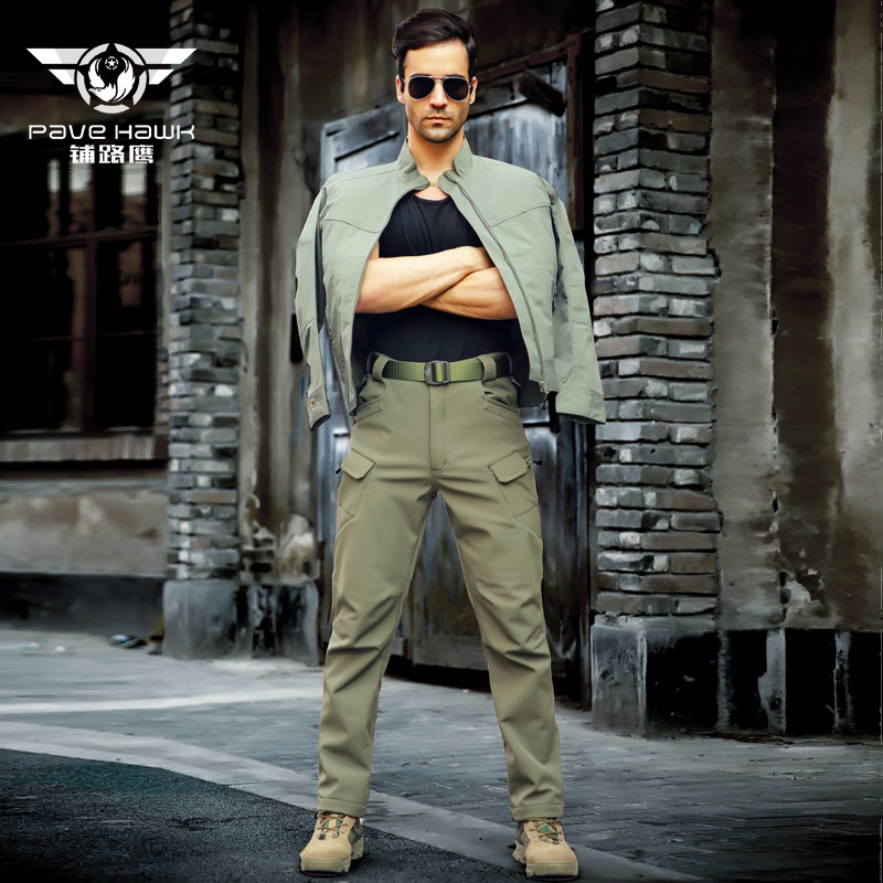 Outdoor Ruling Officer Shark Skin Soft Shell Pants Plus Suede Waterproof ix7 Tactical Long Pants Men's Dash Pants Workwear Pants