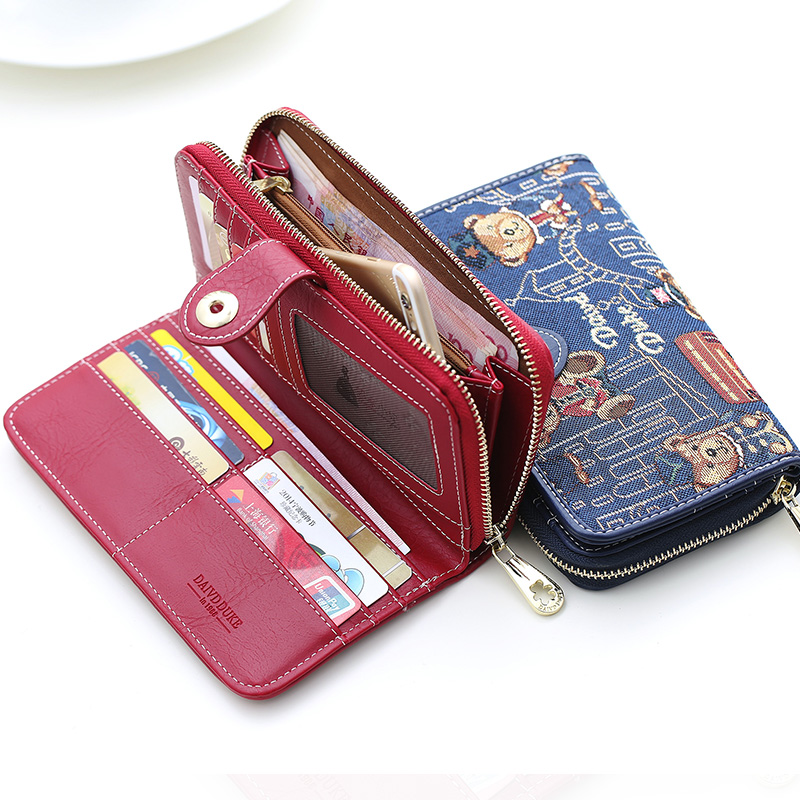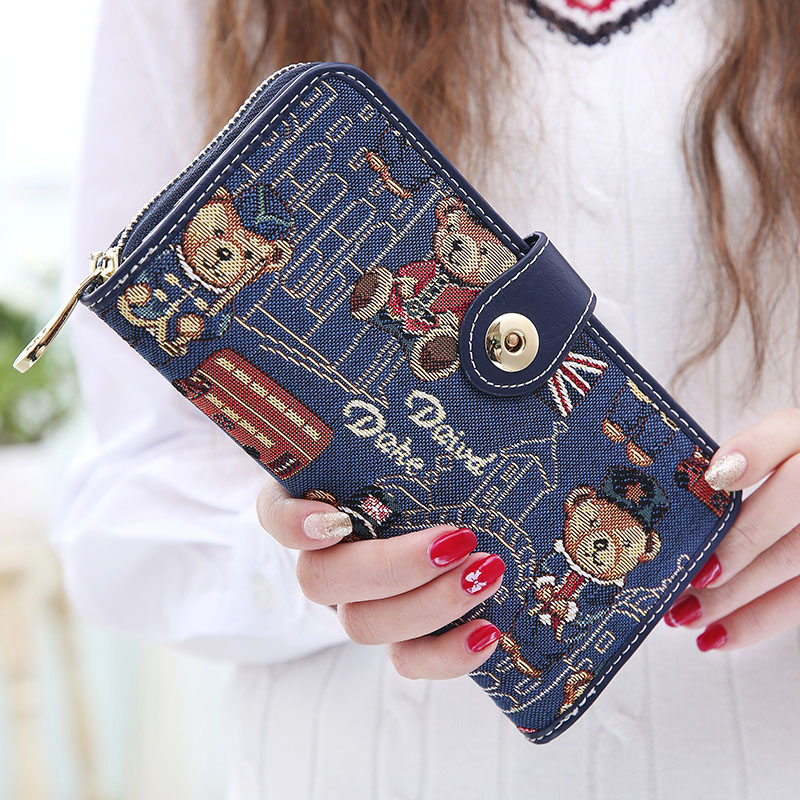 Next door Xiaofei women's wallet female long version of the new practical zipper magnetic buckle cute bear student wallet