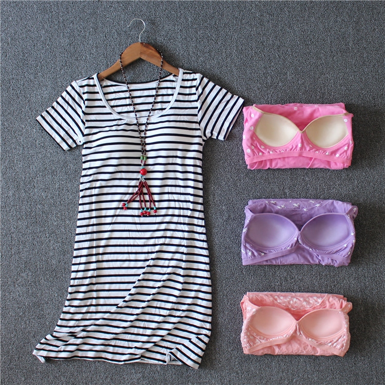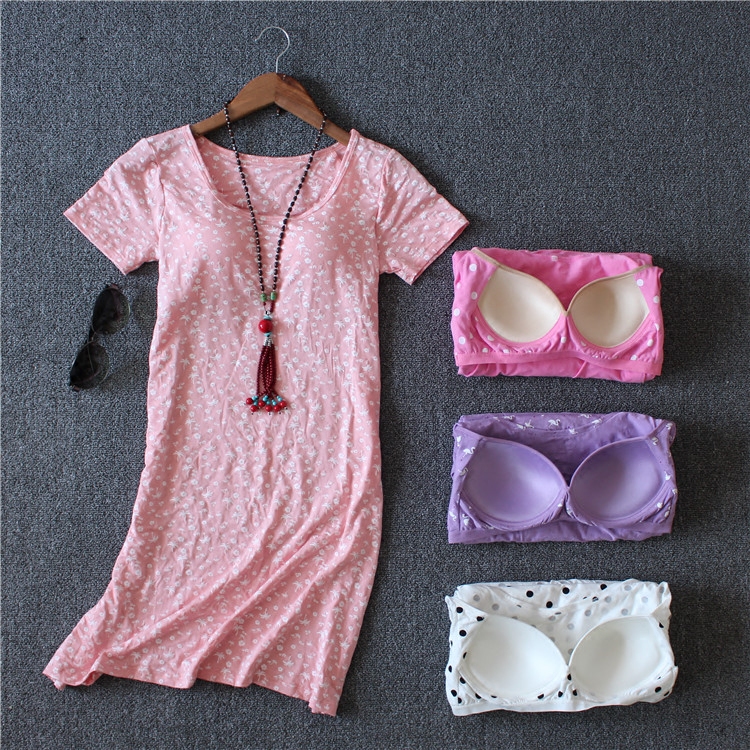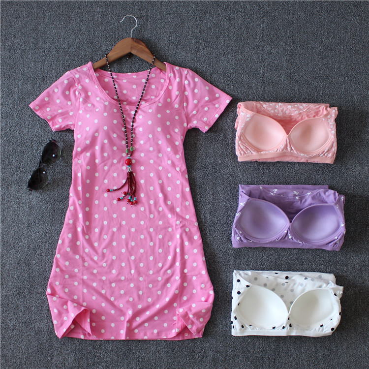 Female summer with chest cushion sleeping dress pure cotton pyjamas half sleeves Bra Cups Integral short sleeve Home Home Clothing in a long foreign dress