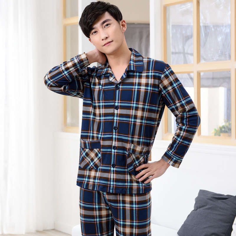 Men's pajamas spring and autumn cotton long-sleeved youth plaid thin section spring and summer 2021 new homewear suit