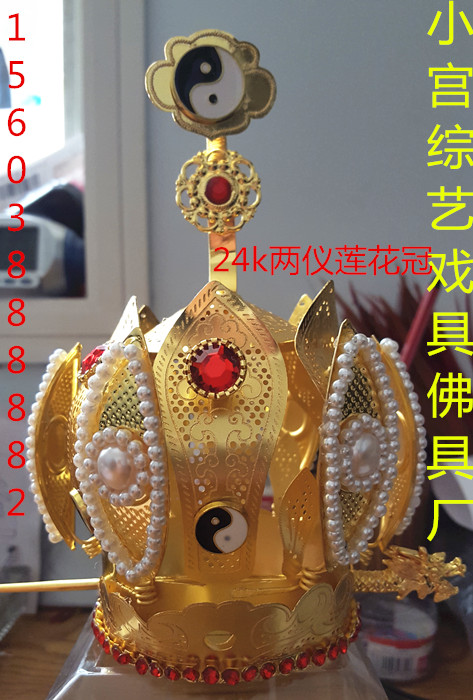Glue mesh subnet towel horsetail hair net law cap alloy lotus crown alloy Bagua crown wooden pole imitation hair Buddha dust