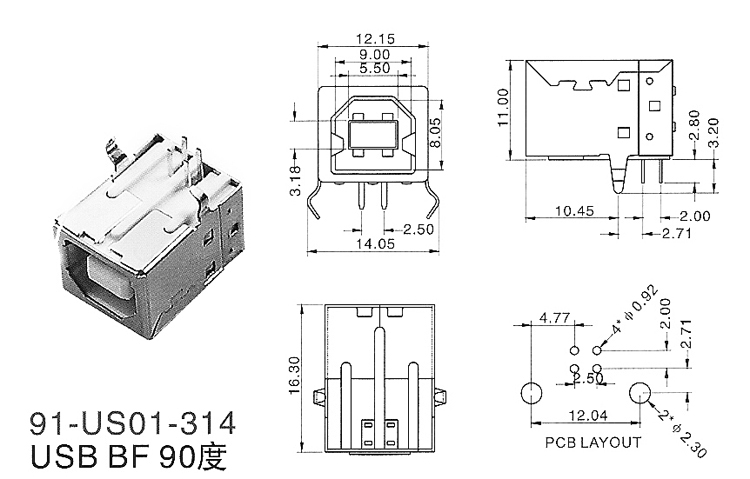 Plug-in USB female seat BF90 shell shell iron inner copper current USB connector power plug