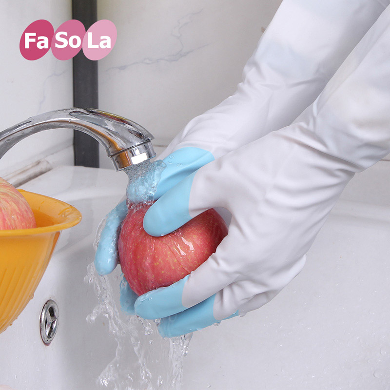 Shark fish oil housework gloves flocked waterproof dishwashing dishes kitchen durable padded velvet rubber cleaning laundry gloves