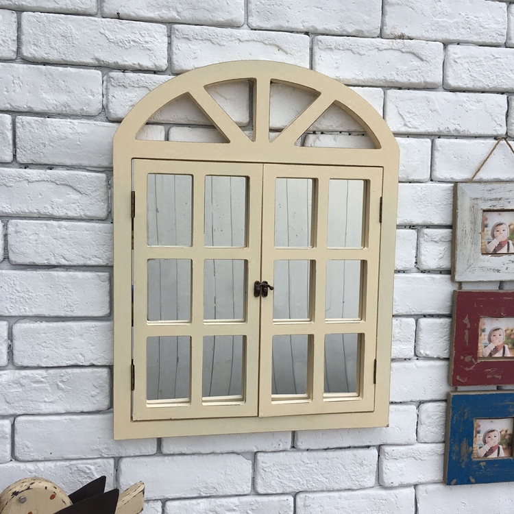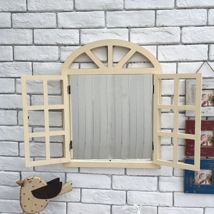 European retro blue with mirror fake window wall decoration Fashion personality creative shop window wall decoration Mirror fake window decoration