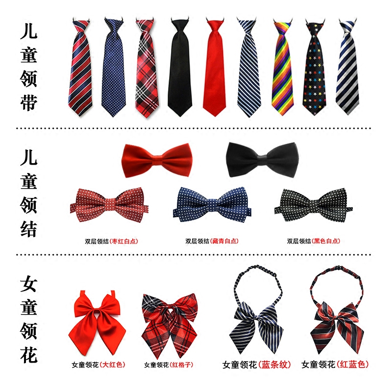 Child tie boy leads girl's lead flower Korean version of the show Accessories Pure Color Striped Plaid Student School Uniform