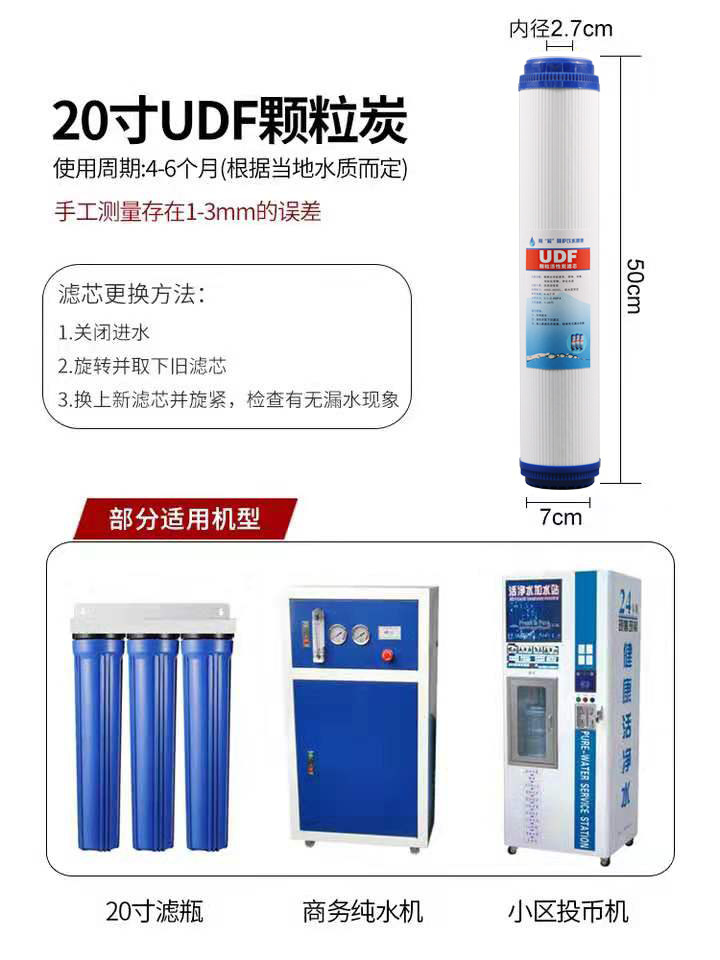 Business water filter machine water purification machine 20 inch water purifier granular activated carbon UDF filter element pre-filter universal