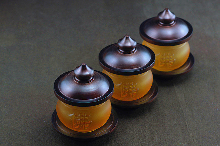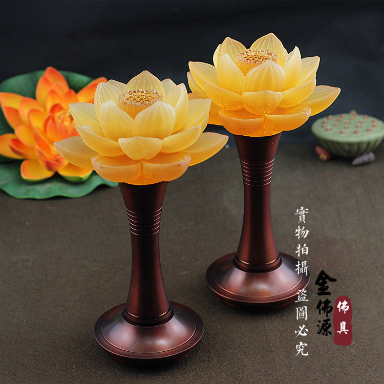 Glazed lotus lamp long Ming Buddha character Lotus bronze incense stove pure copper fruit tray for water glass St.