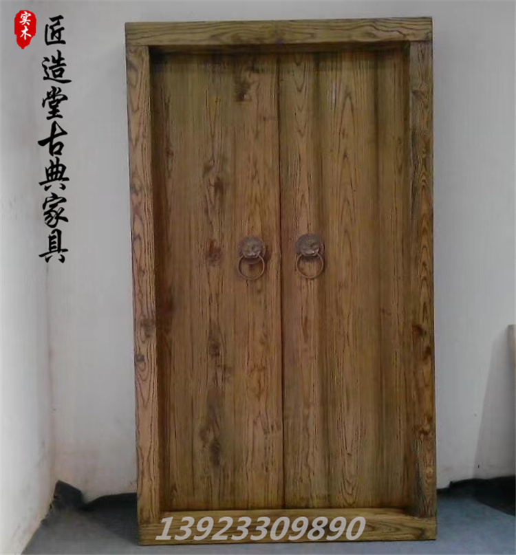 Elm door solid wood antique courtyard door hotel villa door old wooden door carving double door outdoor waterproof paint