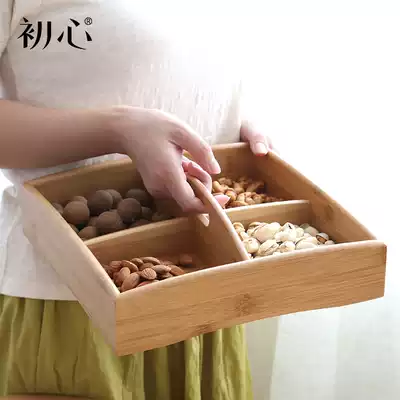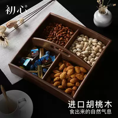 Four-grid candy plate with handle-walnut double-layer rounded four-grid candy plate-walnut (with lid) rounded four-grid candy plate-walnut (with acrylic cover) rotatable round fruit plate (single