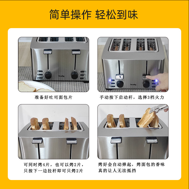 Germany Tenfly Stainless steel Toaster Household Commercial Hotel Toaster 4 slices Breakfast Sandwich toast