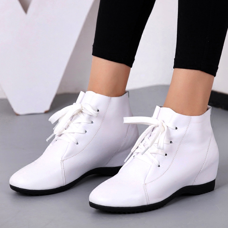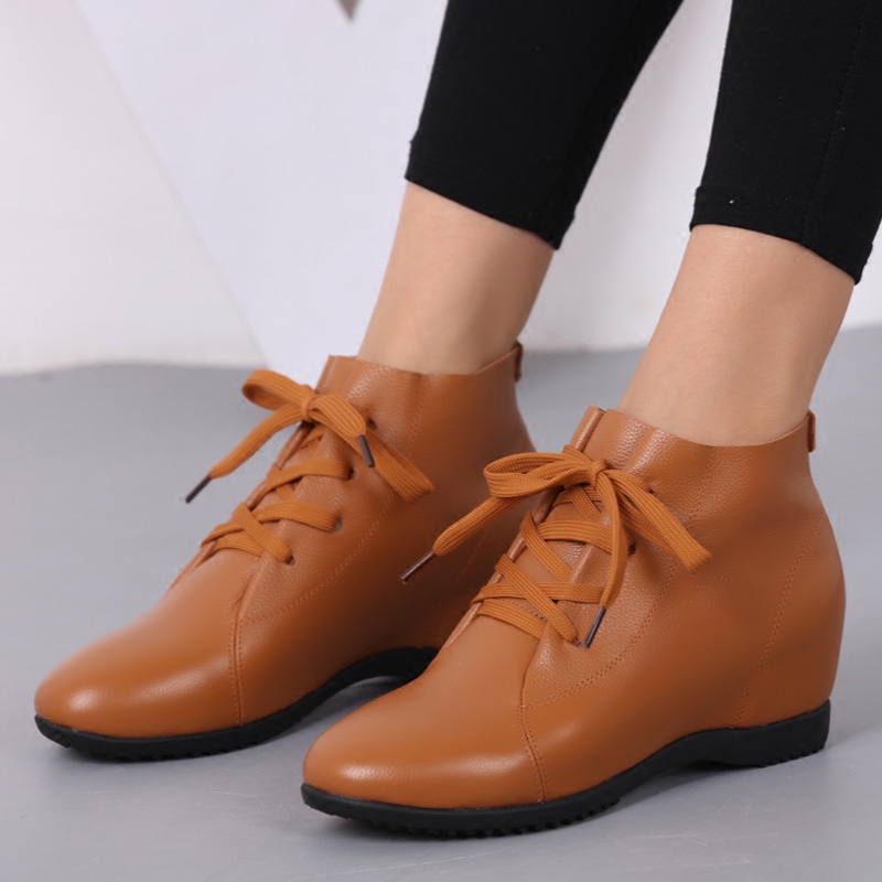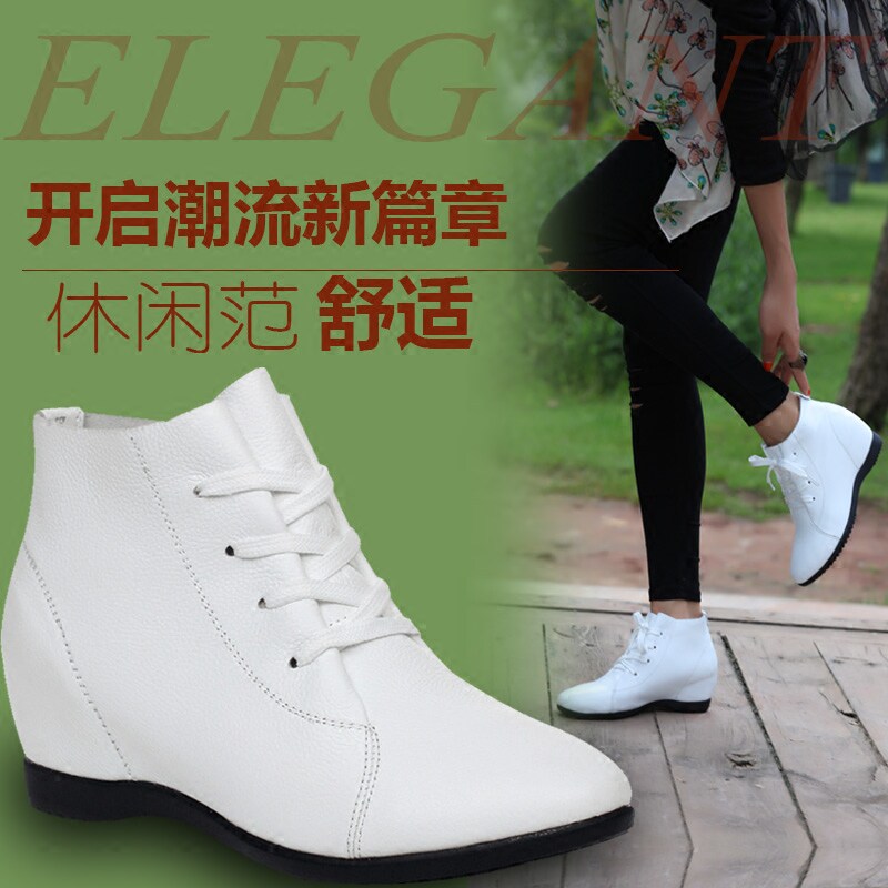 Inner heightening women's shoes 2022 new bag shoes leather casual flat bottom all-match small white shoes wedge leather shoes spring and autumn shoes