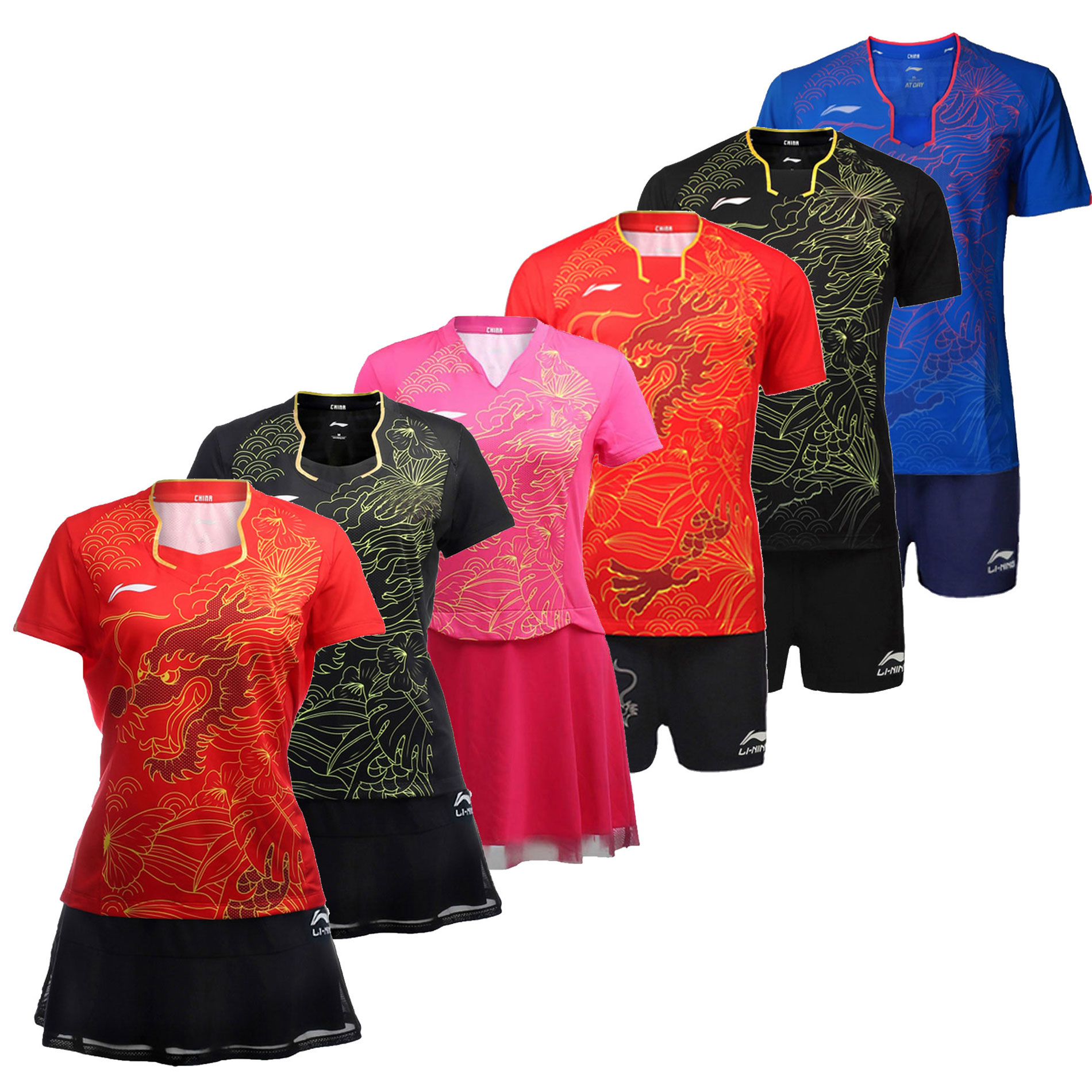 Li Ning world table tennis tournament table tennis match suit dragon suit national suit men's and women's short-sleeved jersey AAYL139 competition style