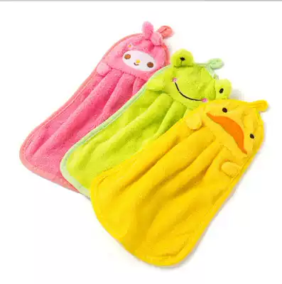 Double-sided thickened coral velvet hand towel hanging towel Korean cute cartoon absorbent kitchen powder room hanging towel