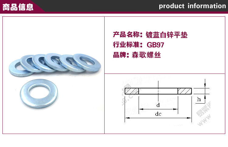 Blue White Flat Cushion 5 6 8 10 12 14 16 20-24 20-24 White Zinc gasket Gaskets China Silk GB97 DIN125