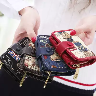 Next door little concubine Lady wallet female short 2018 new female Korean buckle cute bear three fold student wallet