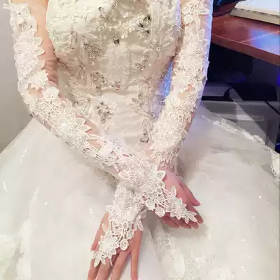 Super beautiful bride lace red white wedding gloves Bride wedding wedding gloves Autumn and winter extended gloves