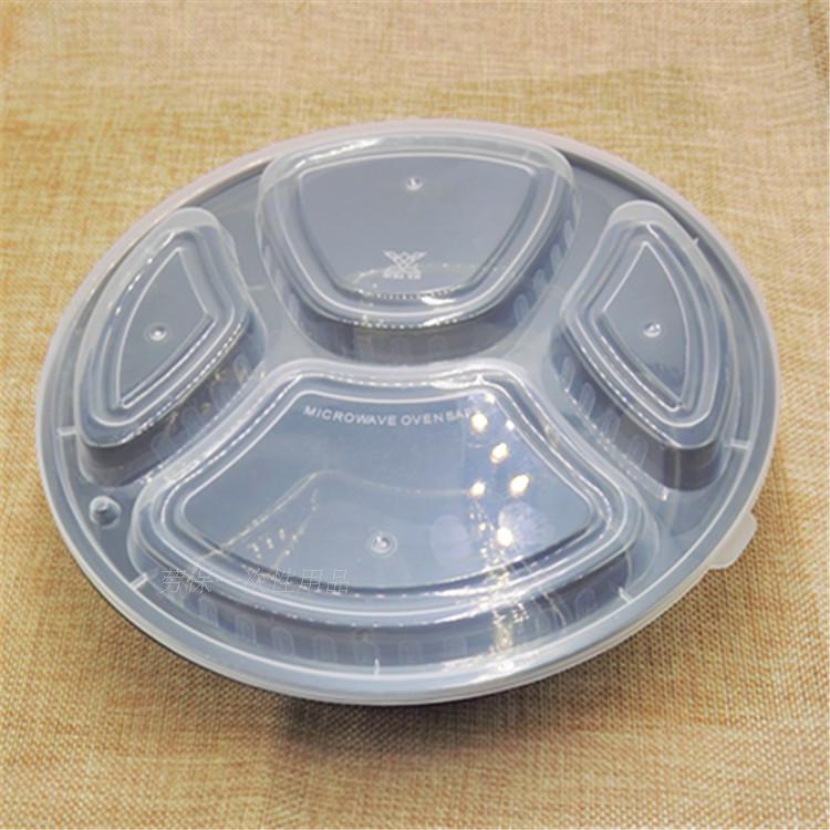Disposable round 4 grid fast food box lunch box packing box 1080ml bento takeaway box set box