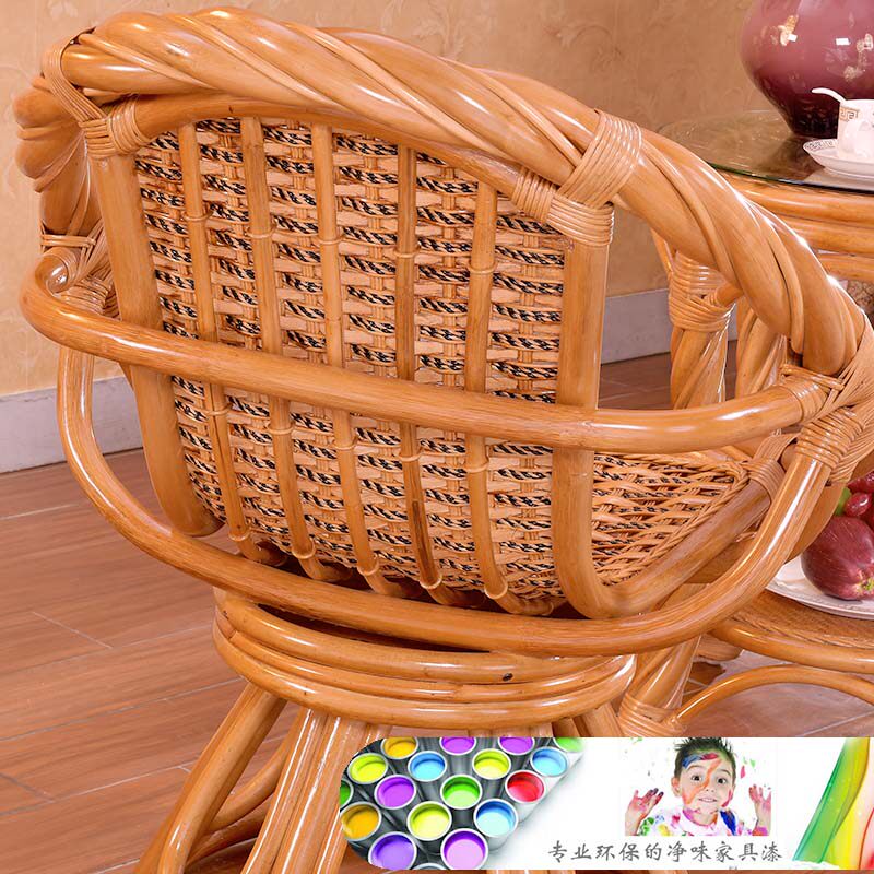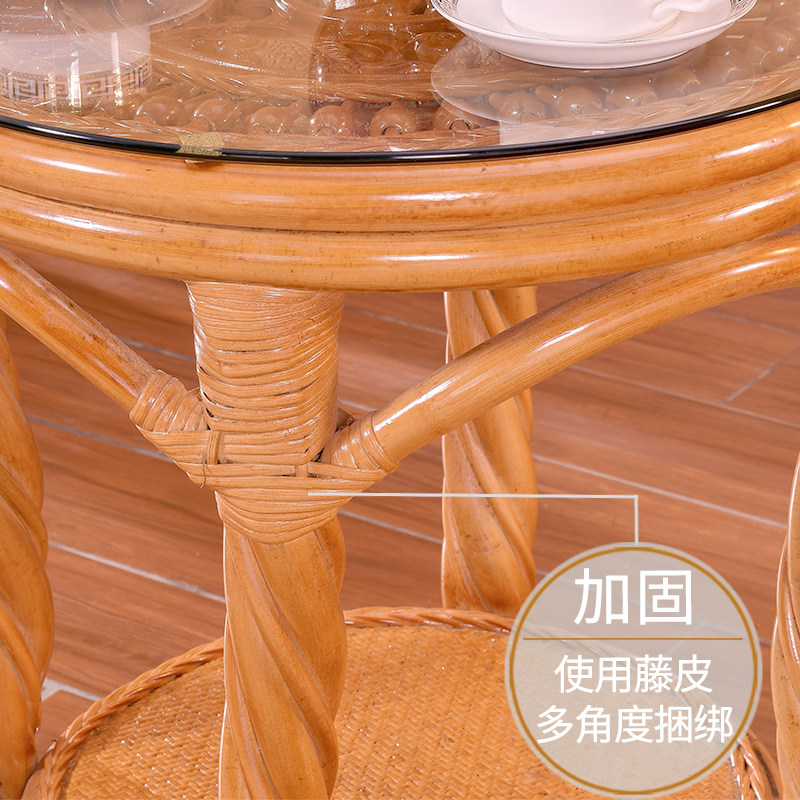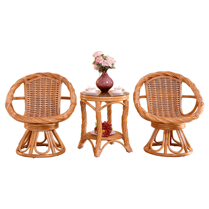 Outdoor natural rattan chair three-piece set rotating single old-fashioned balcony table and chair pure Teng woven leisure chair coffee table combination
