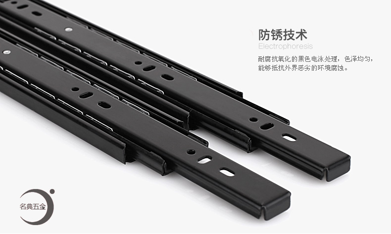 Precision black rust - proof three - section slide drawer slide high - end three - track drawer guide rail is paid one