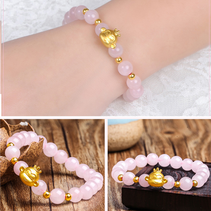 Gold hand chain 999 full gold hand chain 3d hard gold road pass transit beads Zodiac Golden Monkey year of life hand chain female