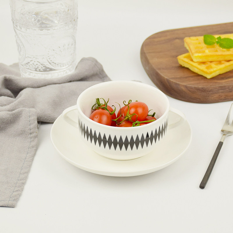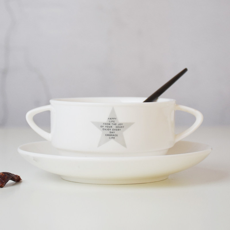 Nordic style binaural soup bowl ceramic soup cup creative stew cup western food binaural soup cup ceramic small fresh binaural soup cup