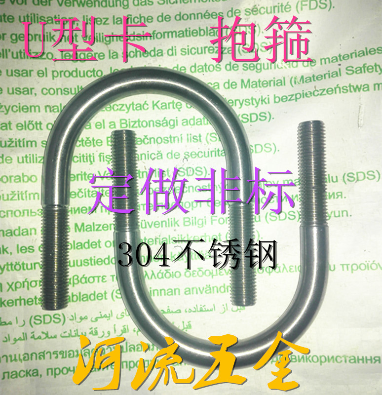 Stainless steel U-shaped card U-shaped screw U-shaped bolt Clamp pipe clamp U-shaped clamp square clamp M10*L
