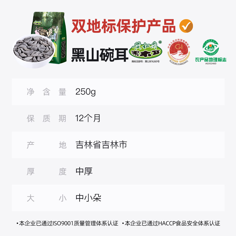 Huang Songdian black fungus northeast specialty wood ear dried goods small bowl ear Changbai Mountain autumn fungus mouse ear 250g