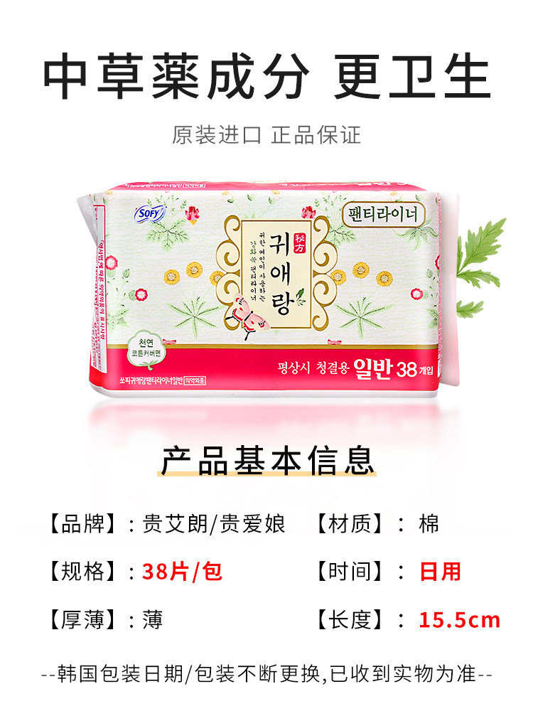 Imported South Korea LG Gui Ai Niang pad 15 5cm 38 pieces of Chinese herbal medicine dry and breathable Gui Ai Lang pure cotton without fluorescence