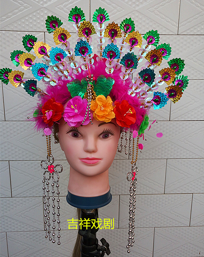 Silver bar phoenix crown headdress New headdress Gold bar Phoenix crown headdress silk ball 1 with braided silk ball 2 with braided silk ball 3 with braided fluff with braided green beads with braided headdress Pink beads with braided headdress Pink shell