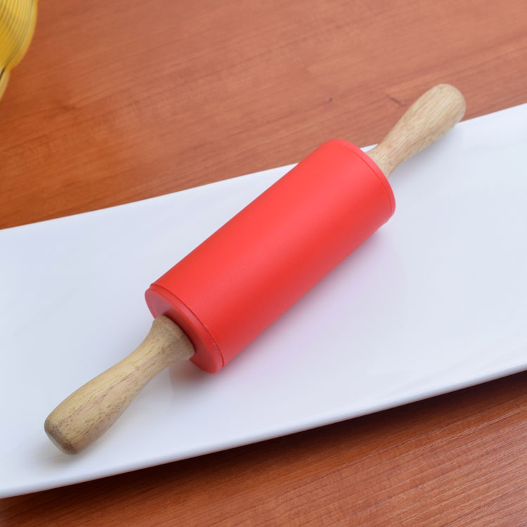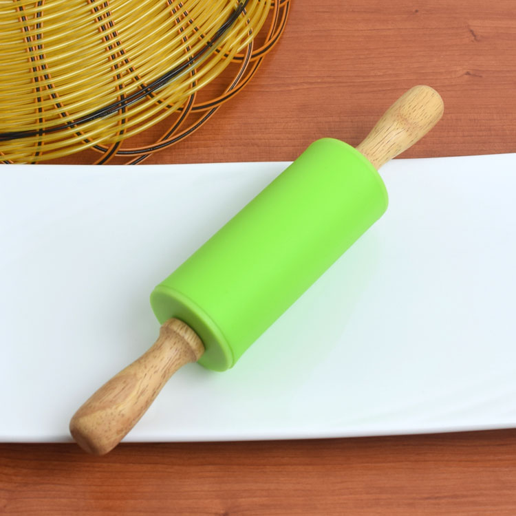 Child silicone roller rolling pin roll with small multifunctional solid wood handle and stick kneading face stick mini 23CM