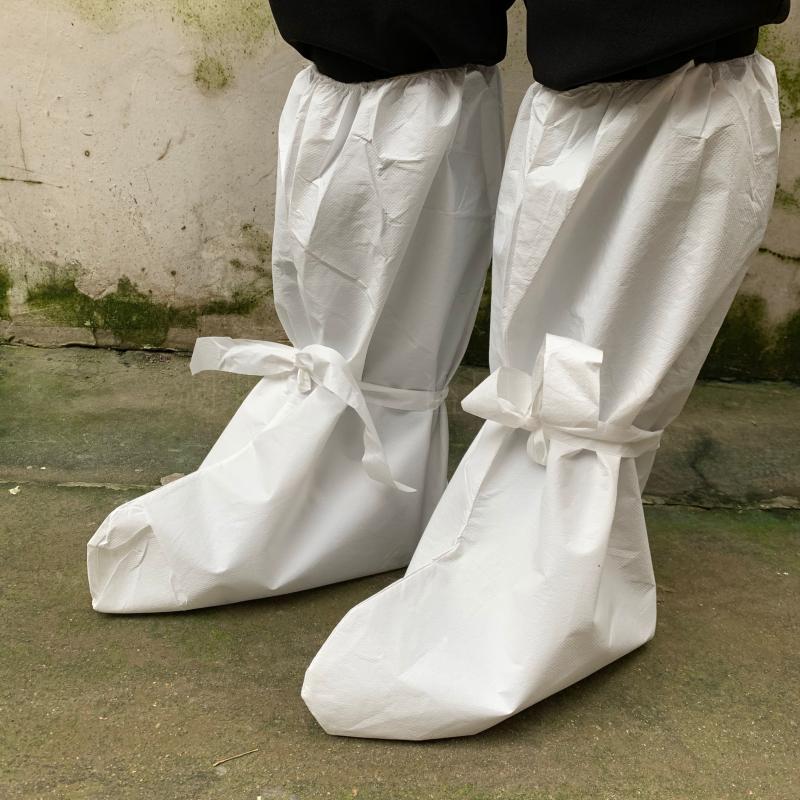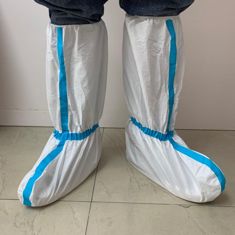 50 disposable extended shoe covers breathable film non-woven boots cover waterproof double rib high waist strap film
