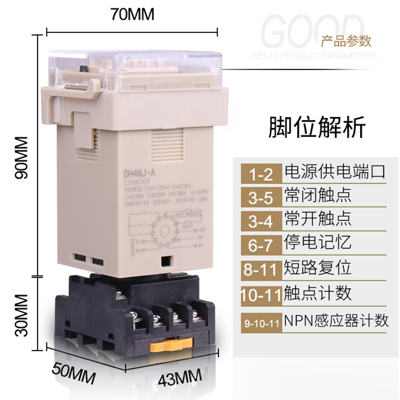 Digital display DH48J-A electronic counter DH48J-11 preset counting relay 220 380 24v guaranteed for two years