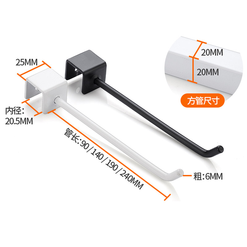 Black and white square tube hook bayonet 2.0 square tube hook accessories mobile phone accessories snacks hook supermarket shelf hook