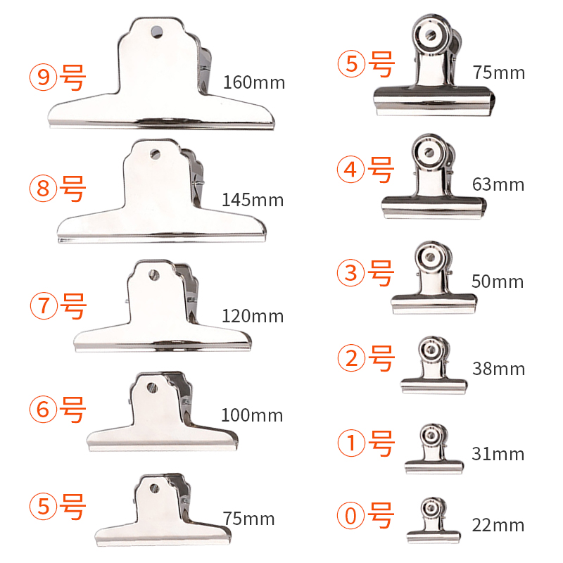 No. 0 (22mm) round clamp X30 about 100 sheets of paper No. 0 (22mm) round clamp X66 about 100 sheets of paper No. 1 (31mm) round clamp x