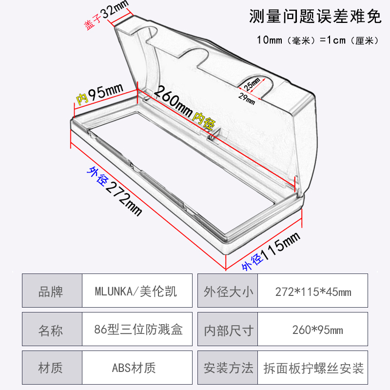 Bathroom splash-proof box 86 Type of switch socket Even body Water retaining box Three triple waterproof case transparent waterproof cover